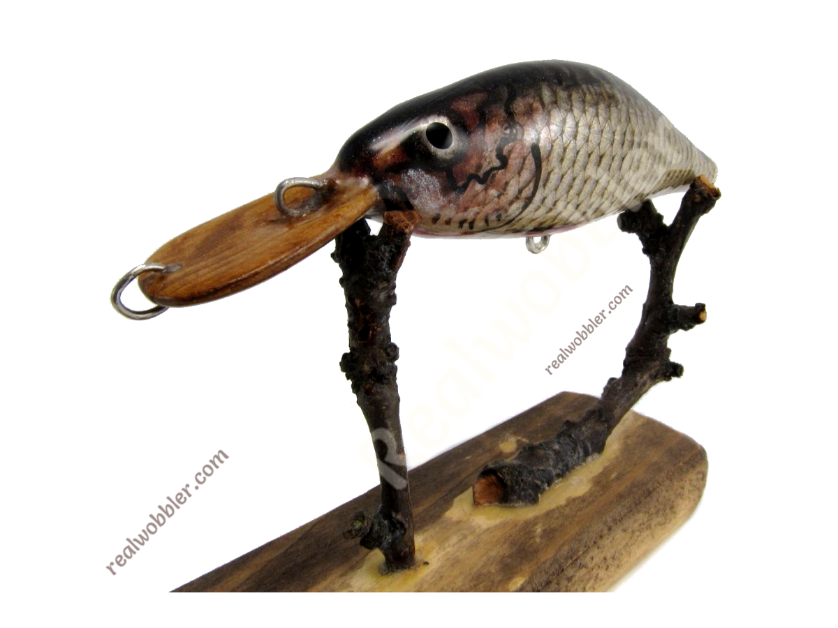 Този воблер е изцяло ръчно изработен уникален шедьовър и е единствен с тези характеристики: форма, тегло, плуване, ръчно рисуване, рибена кожа. Тялото му е изработено от здрава топола; нещо повече, то е обвито в истинска рибена кожа от червеноперка. За да осигурим отличното му плувно действие, той е тестван в река, под въздействието на естествената вода и околната среда.