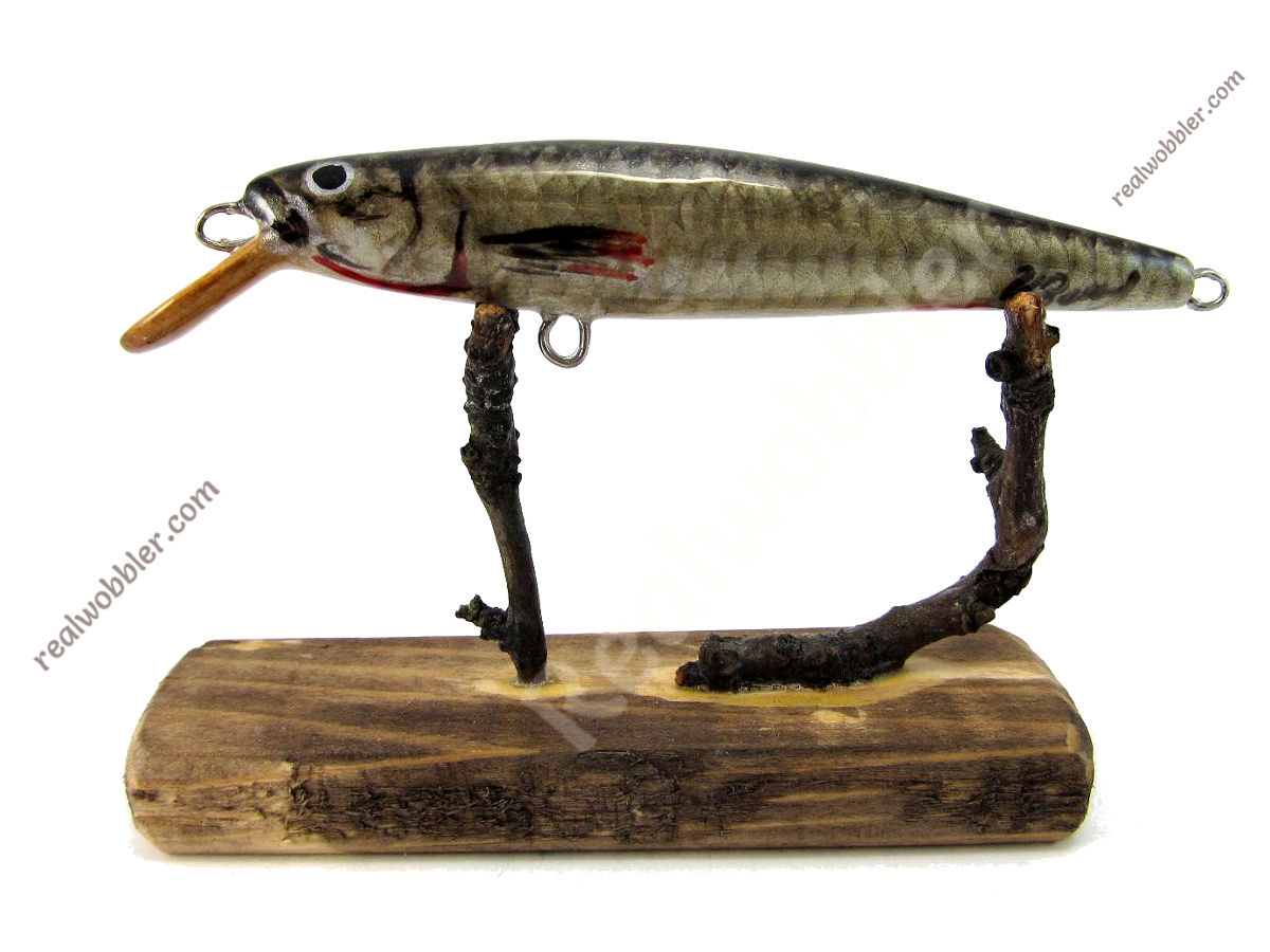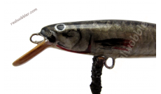 Този воблер е изцяло ръчно изработен уникален шедьовър и е единствен със следните характеристики: форма, тегло, плуване, ръчно рисуване, рибена кожа. Тялото му е изработено от здрава топола; нещо повече, той е покрит с истинска рибена кожа от скобар. За да осигурим отличното му плувно действие, го тестваме в река, под въздействието на естествената вода и околната среда.