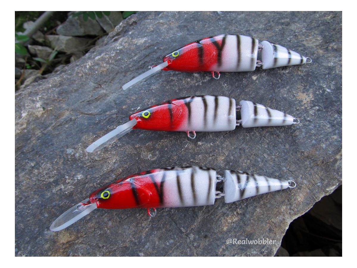 Handgemachter Wobbler Retro "Red Head Jointed Zebra"